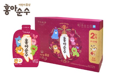 | 원재료명 및 함량 | 홍삼농축액(6년근, 국산, 진세노사이드 Rg1, Rb1 및 Rg3의 합 25mg/g, 고형분 60%이상, 원료삼배합비율 : 홍삼근 70%, 홍미삼 30%)2.11%, 홍아홍삼분말액 호야[고형분 1.584%, 정제수, 홍삼분말(국산)] 63.15%, 감추출농축액[고형분 68%, 감(국산)], 유기농당근농축액[당근(독일산)], 유기농사과농축액 [사과(독일산)], 유기농배농축액[배(터키산)], 유기농호박농축액, 녹용추출액, 수용성아쿠아민(해조칼슘), 대추농축액, 아세로라추출분말, 클로렐라, 유기농야채혼합분말, 유기농아로니아분말, 밀 함유, 1포(25g)당 진세노사이드 Rg1, Rb1 및 Rg3의 합 12mg |